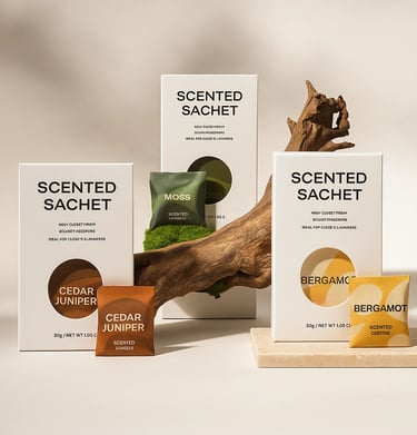 Candles and sachets designed for those who prefer subtle, light, soothing fragrances — never overpowering, always calming.